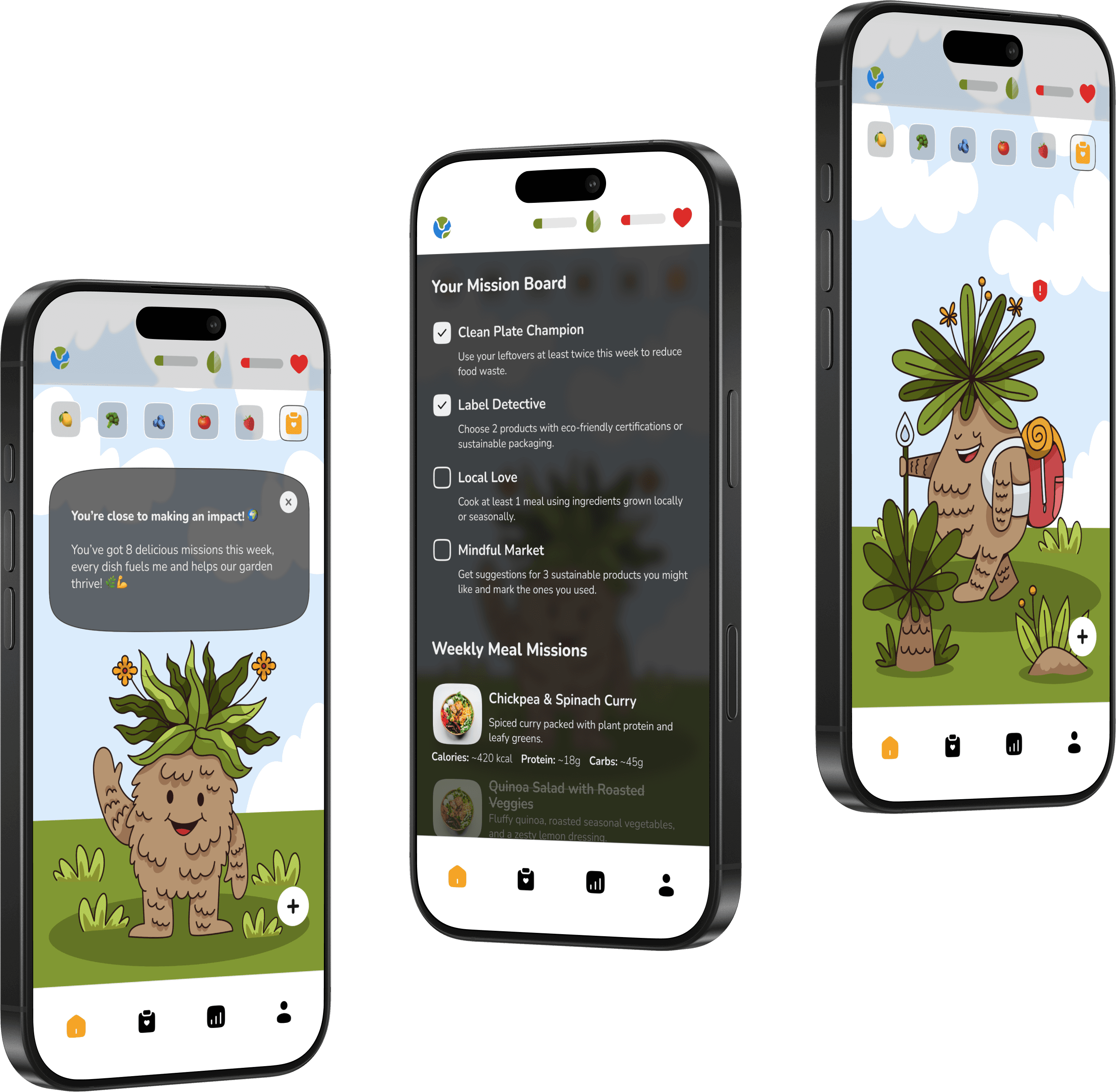We didn’t just want another nutrition tracker, we set out to create an experience. An app where your food choices don’t just affect numbers, but grow a living, breathing world around you.