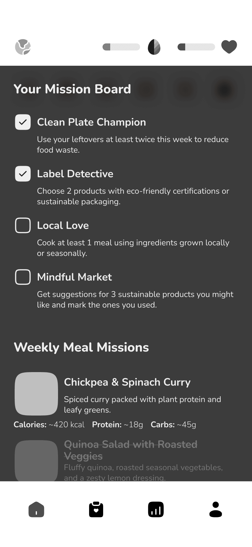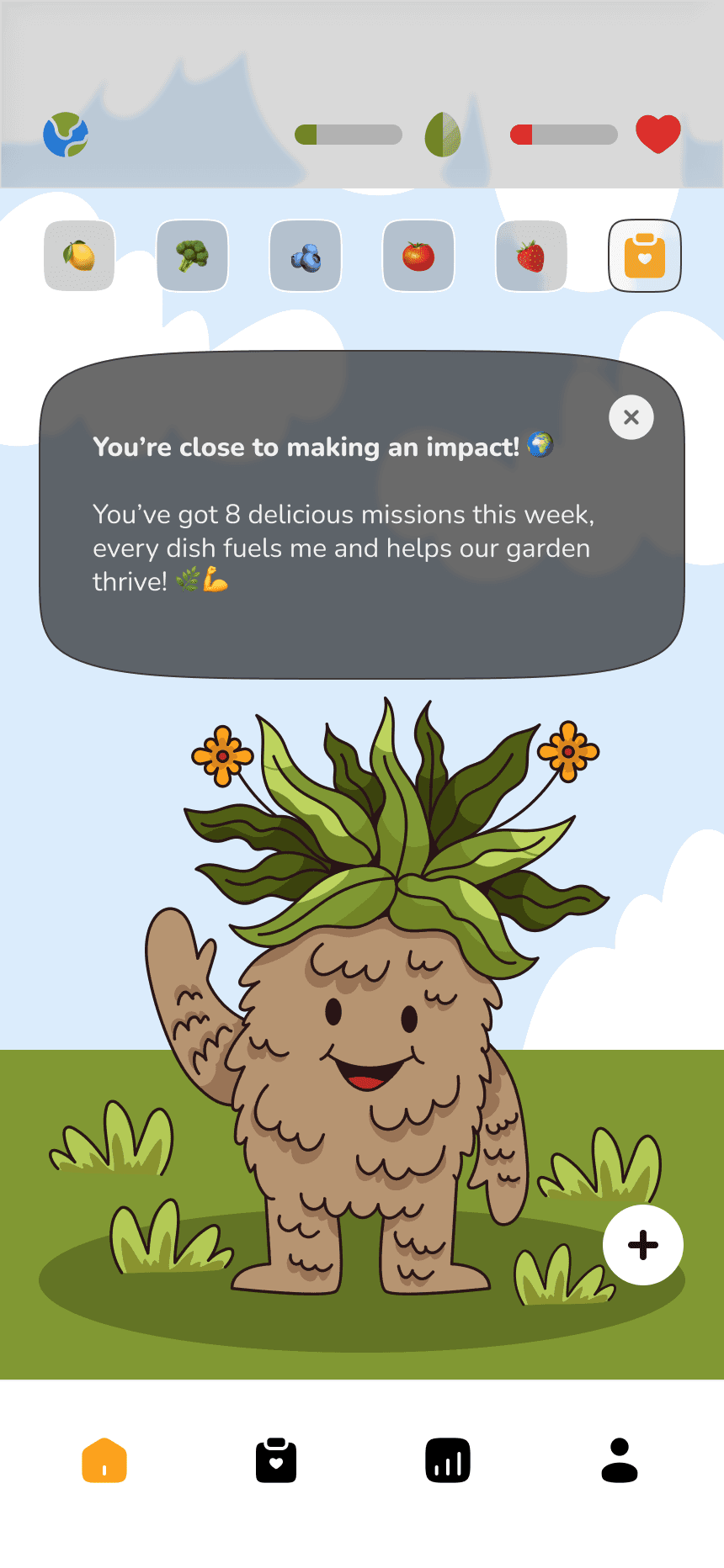 Root helps users eat smarter and greener not by preaching, but by playing. They complete their mission boards while tracking their progress. If not avatar gets weaker and the garden gets smaller. Every action has visible results with Root.