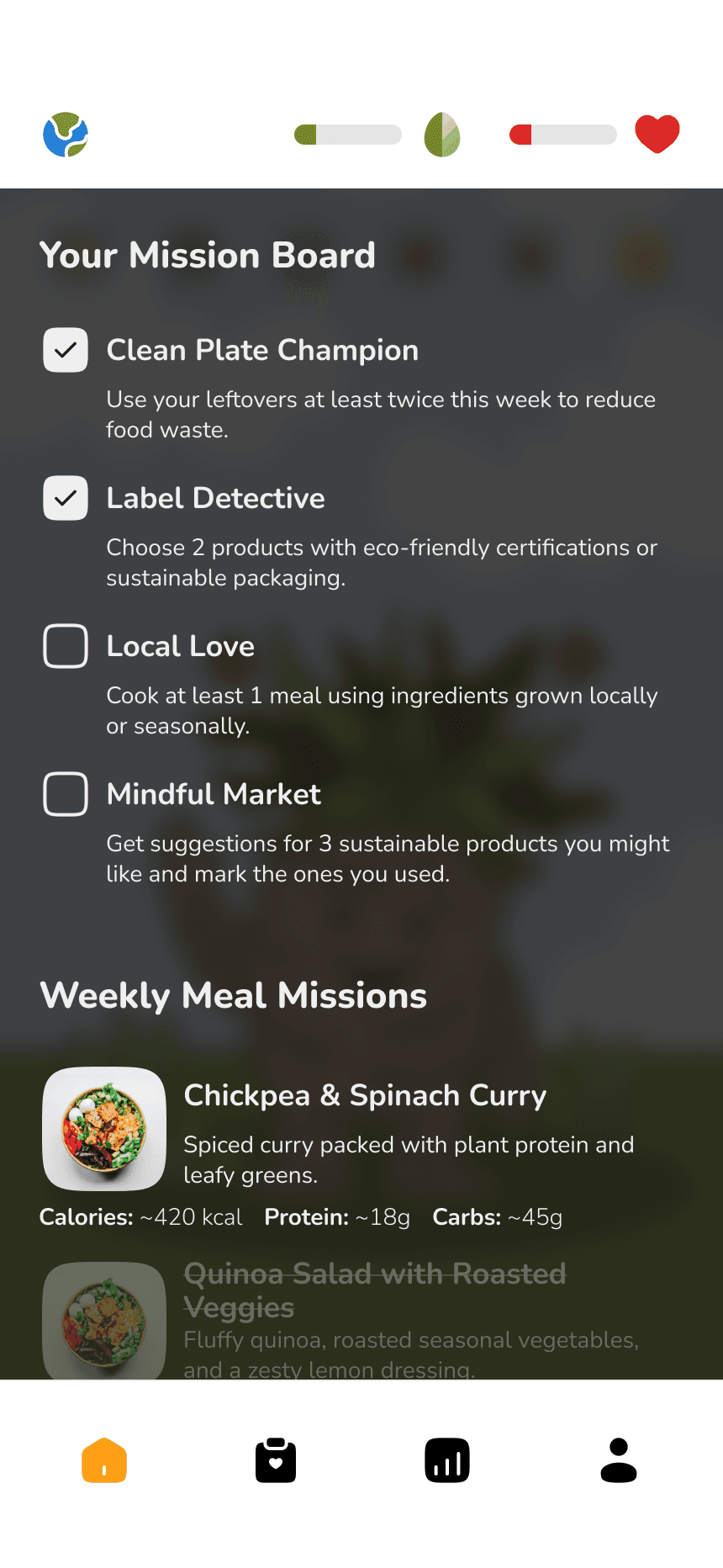 As more people seek to adopt sustainable eating habits for ethical and environmental reasons, they often face overwhelming challenges: confusing information, lack of clear guidance, and low long-term motivation. Environmentally Conscious Consumers need to find a way that supports their health while maintaining sustainable food choices because they often face barriers like unclear information, cooking fatigue and concerns about getting enough nutrition.